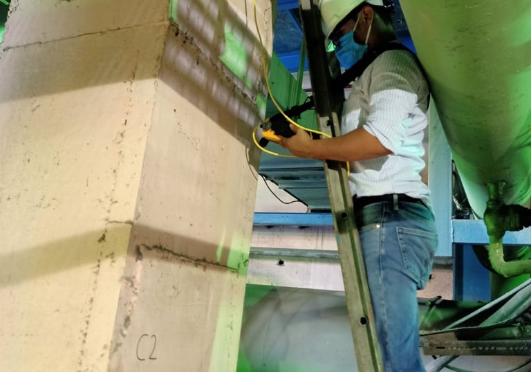 Assessment of existing machine foundations and pedestals (static/dynamic), structural health checks, vibration measurement, development of retrofit strategy (e.g., adding piggy-back slabs, isolation pads, or foundation stiffening) to extend life and safe operation.